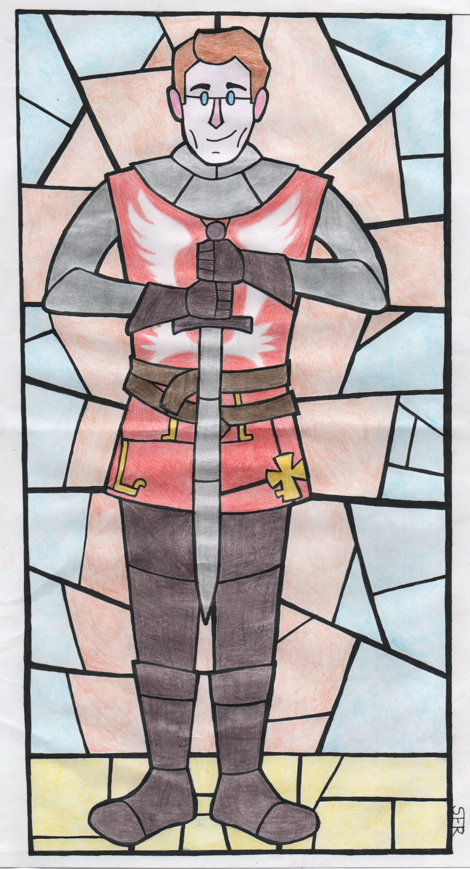 And under the cut, Lancelot stained glass, but made with coloured pencils.